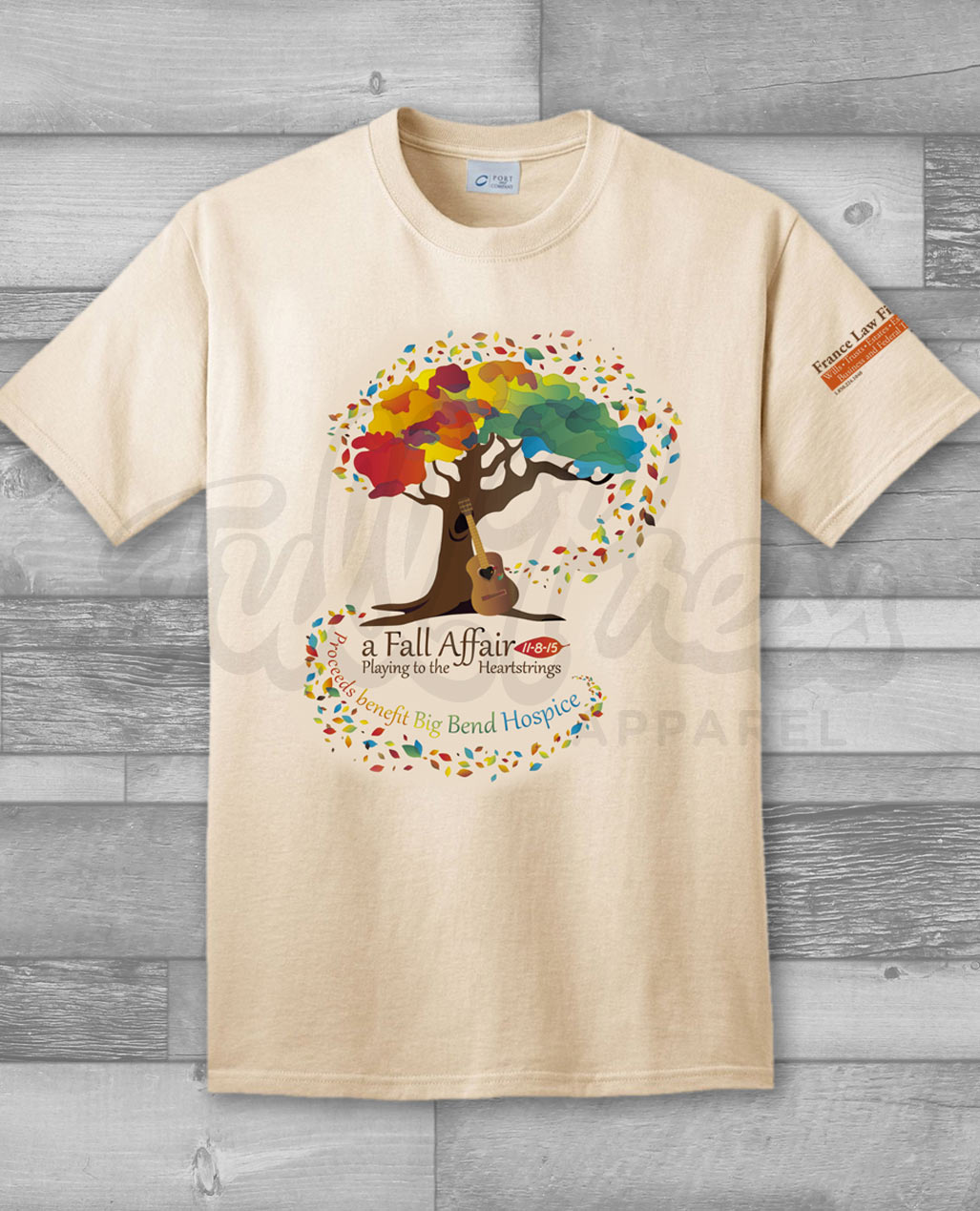 A unique illustration of trees and a casual font gave these 4-color tank tops a handcrafted look for the Alpha Omega Pi 2014 event.